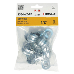1/2 in. Galvanized steel one hole EMT strap. Maximum EMT diameter 0.71 in. Hole size 1/4 in.
