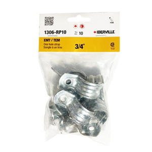 3/4 in. Galvanized steel one hole EMT strap. Maximum EMT diameter 0.92 in. Hole size 1/4 in.