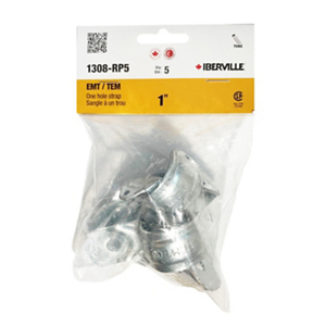 1 in. Galvanized steel one hole EMT strap. Maximum EMT diameter 1.16 in. Hole size 5/16 in.