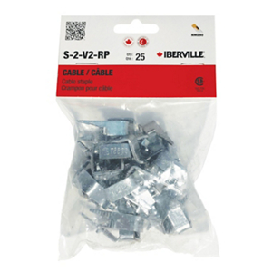 Steel cable staple. Suggested application NMD90: 2 cables 14/2, 2 cables 12/2, 14/2-10/2, 14/3-10/3.